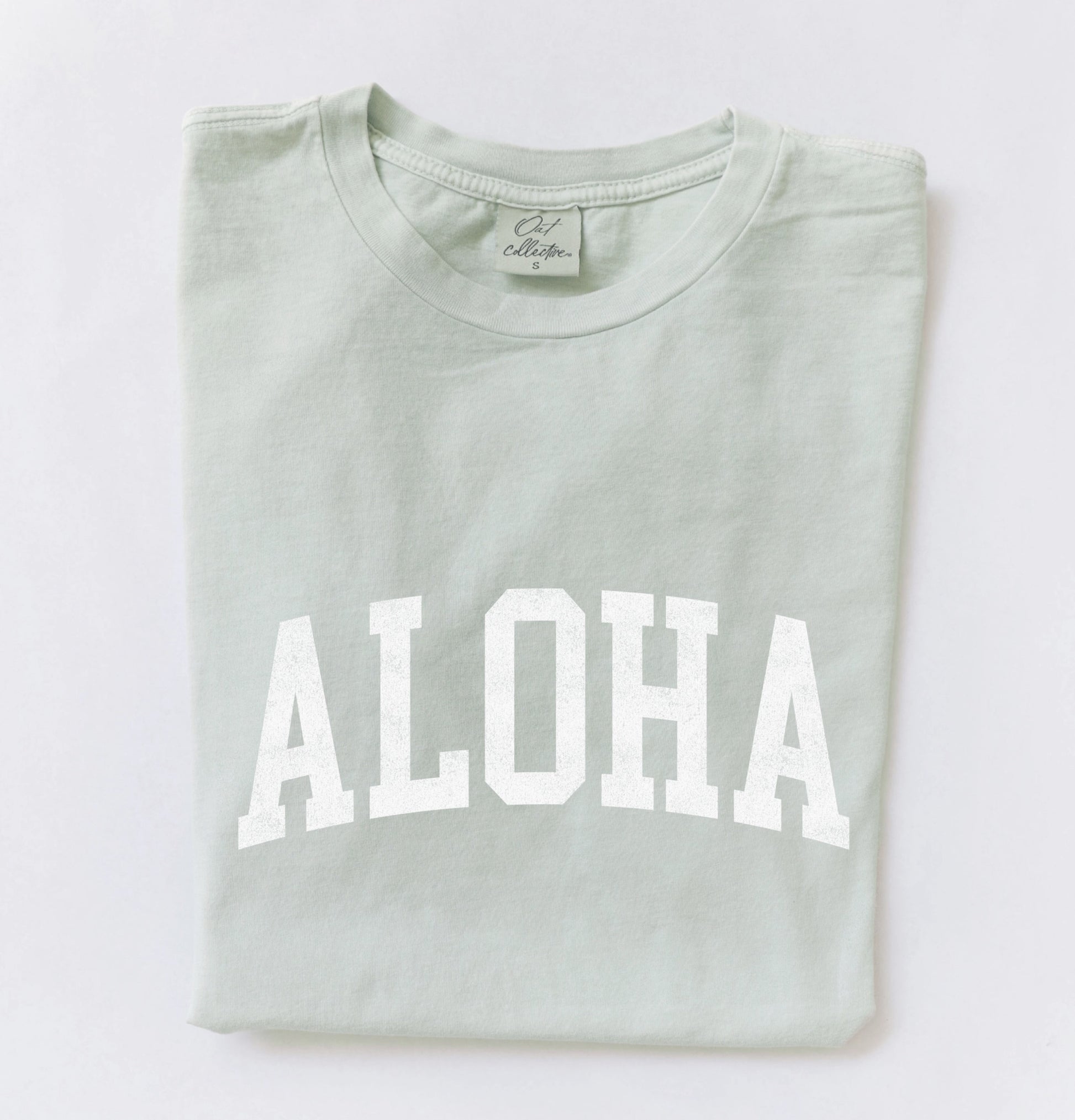 Aloha Mineral Graphic Top T-Shirt (Sage color) - by OAT COLLECTIVE
