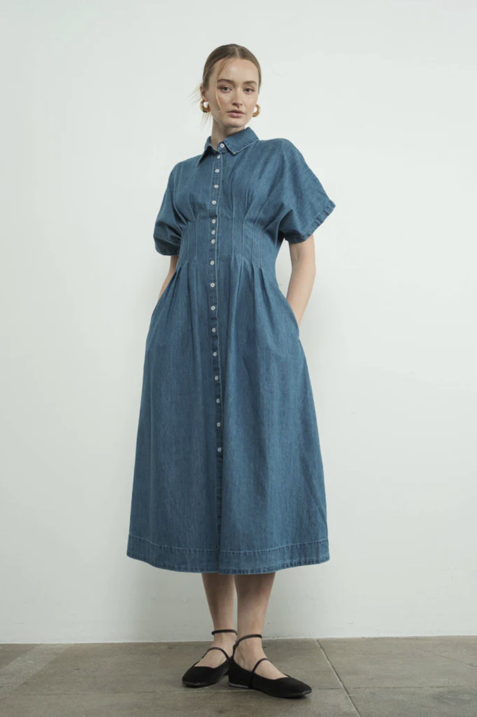 Button-Front Pleated Shirt Dress - By Aaron & Amber®