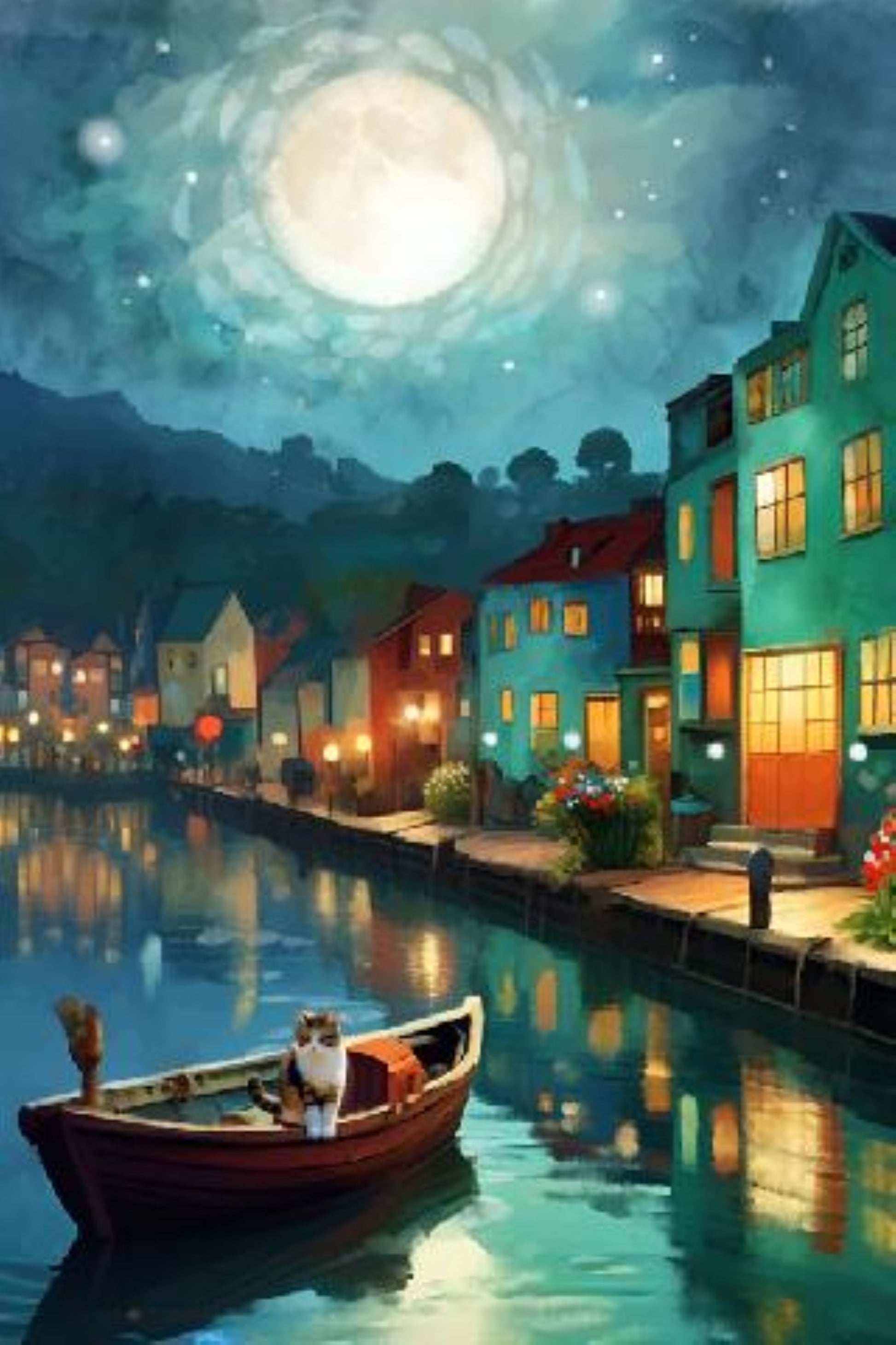 Cat in the Moonlight - Illustrated Print by Thomas Little