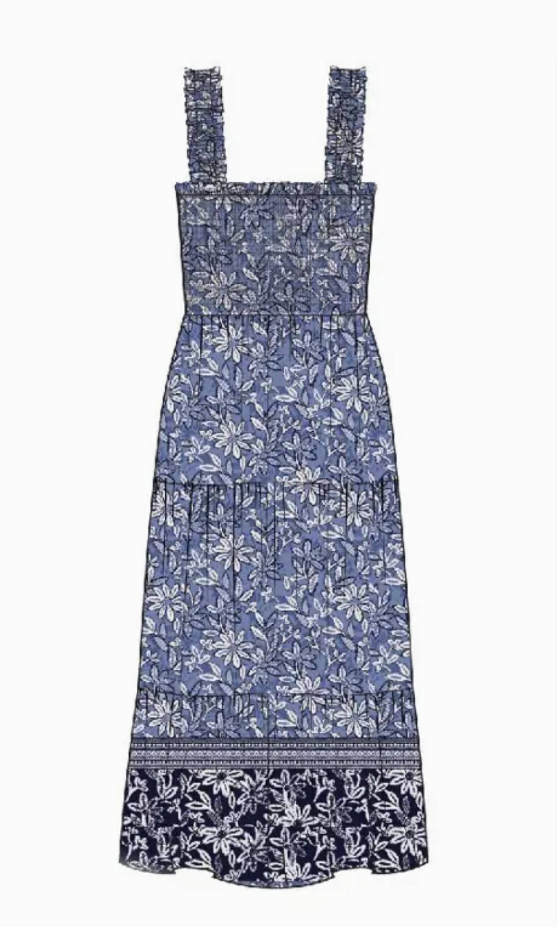 Elsa Blue Floral Smocked Maxi Dress is your go-to for sunny days and relaxed evenings. Designed with a flattering smocked bodice, wide straps, and a flowing skirt, this dress combines comfort with timeless style. The soft blue floral print and contrasting border hem add a touch of boho charm, making it perfect for picnics, vacations, or casual weekends.