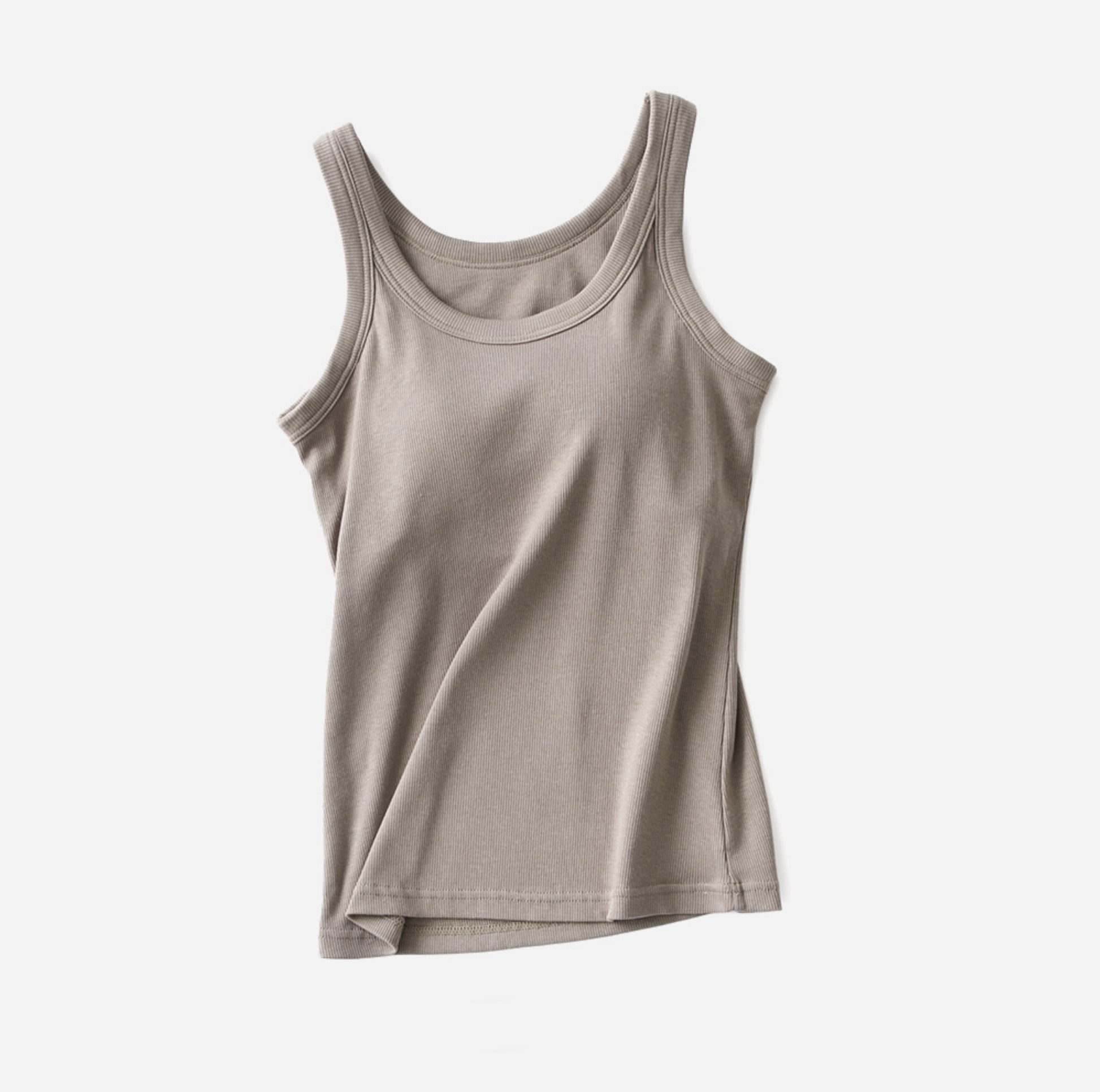 Essential Basic Rib Tank Top with Built in Bra - Brown color - by Rosa Clothing®