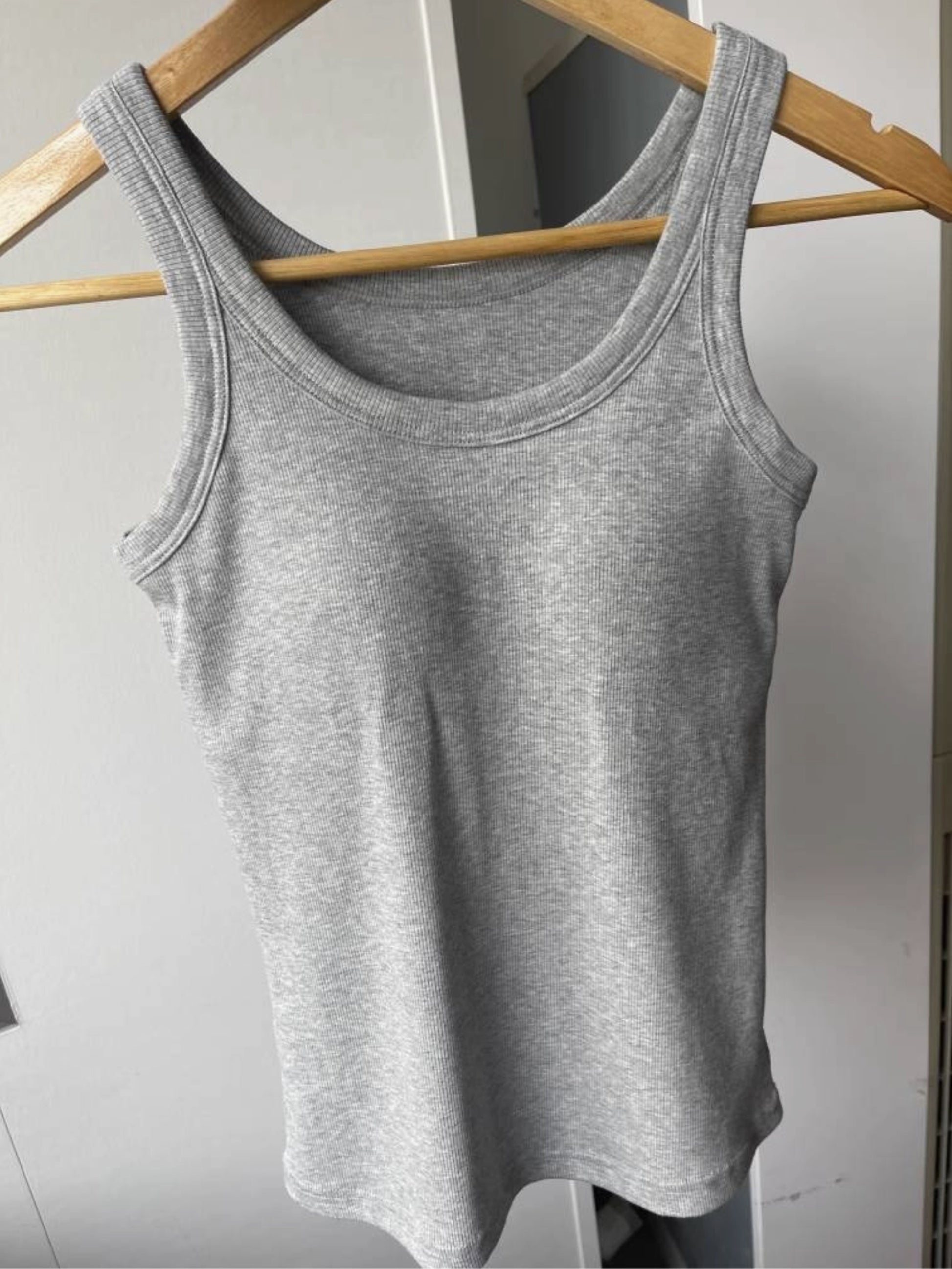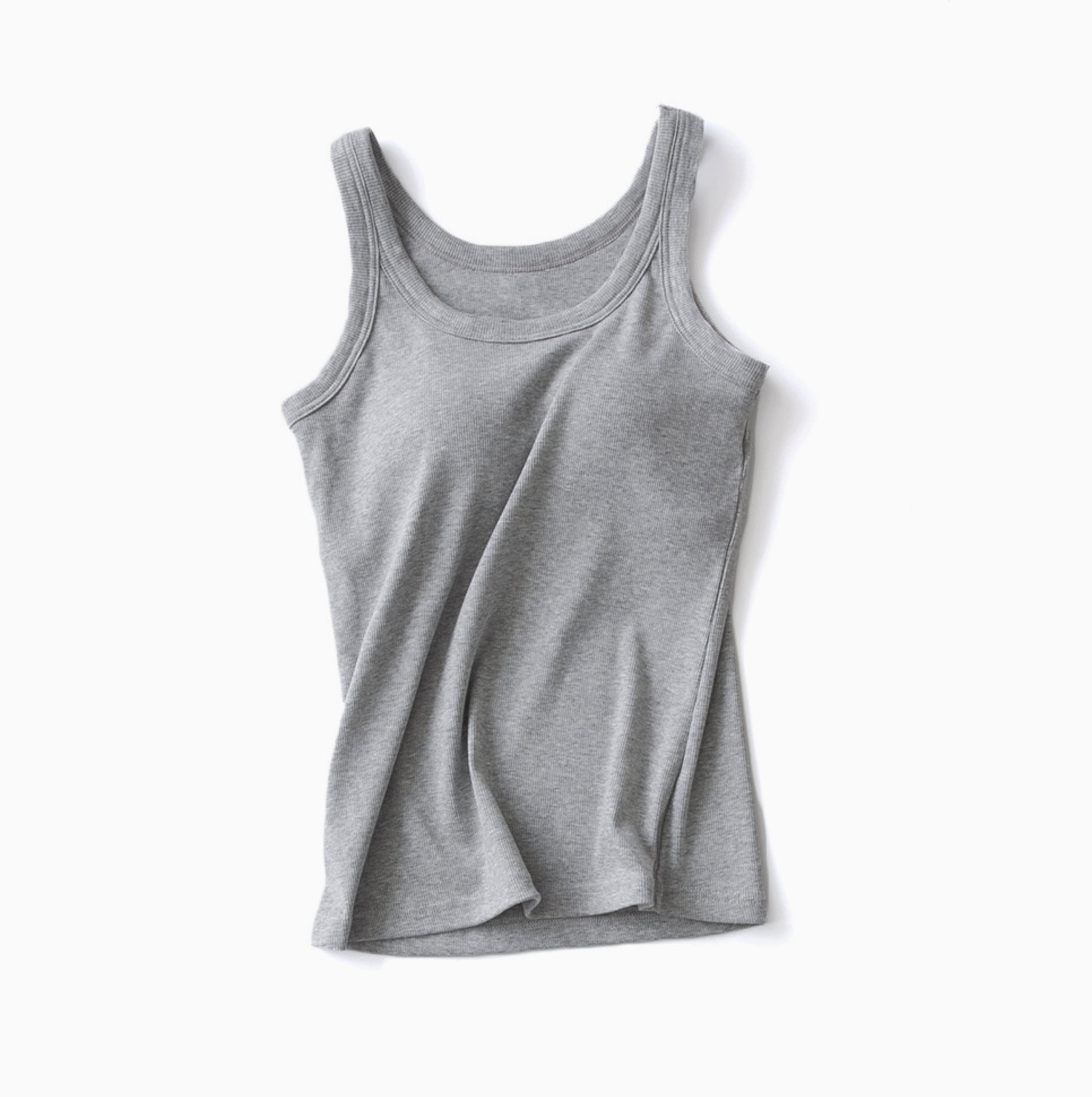 Essential Basic Rib Tank Top with Built in Bra - Heather Gray color - by Rosa Clothing®