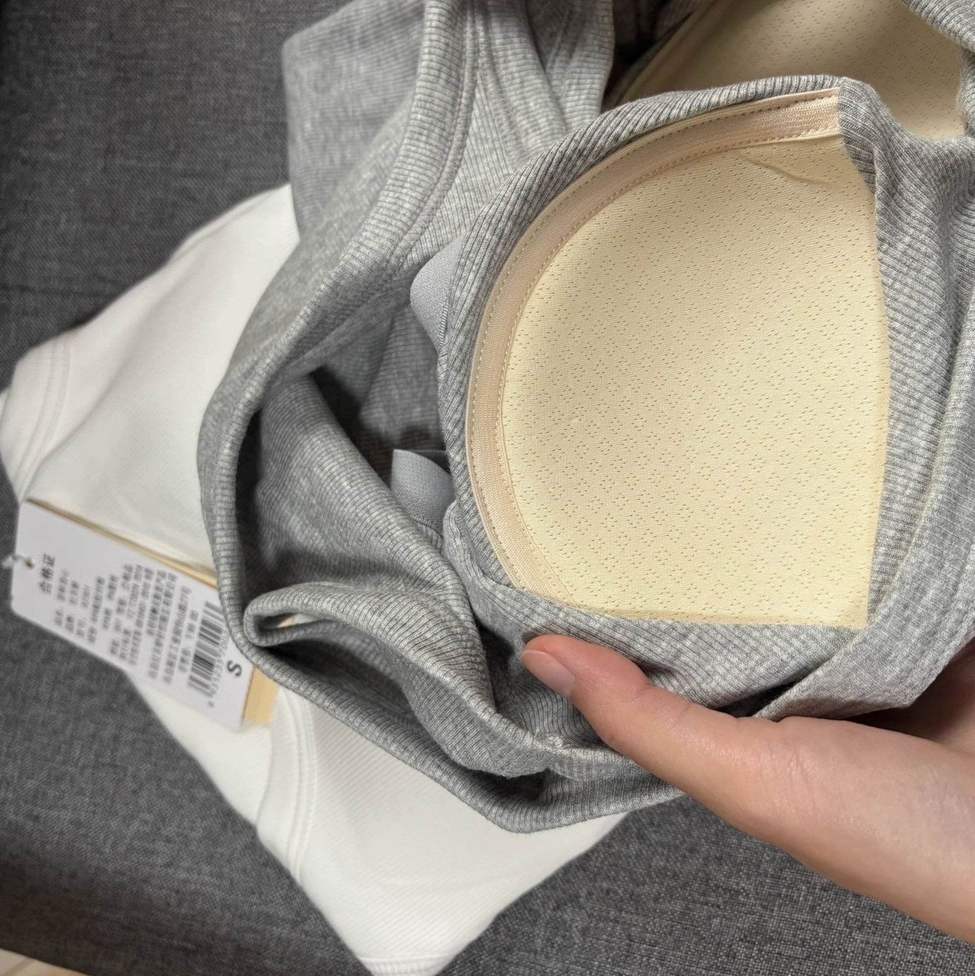 ROUND NECK cotton blend Essential basic rib tank top with built in bra.
