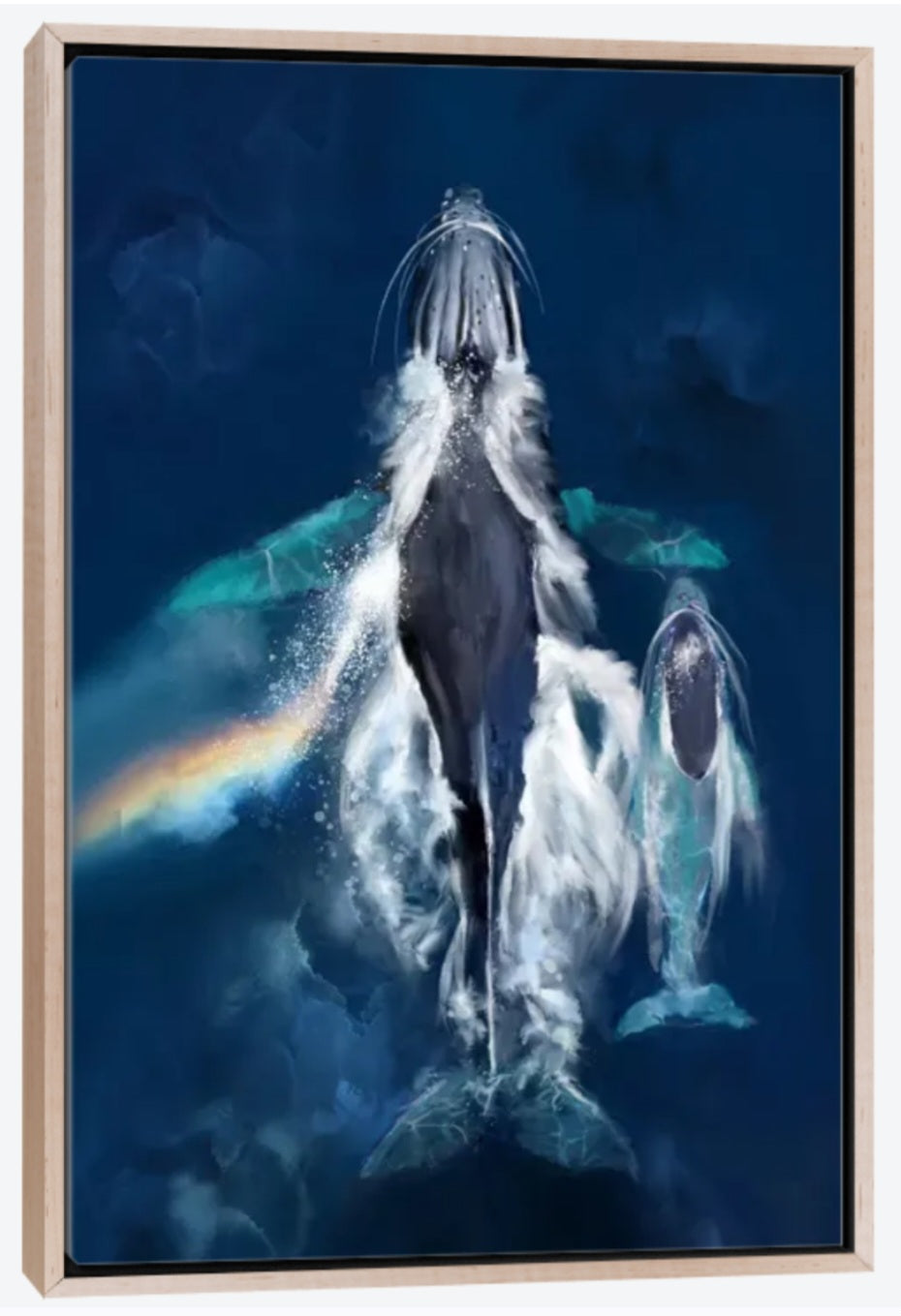 Mother and Baby Whale by Thomas Little - 48 x 32 inches - Canvas and Natural Wood Framed