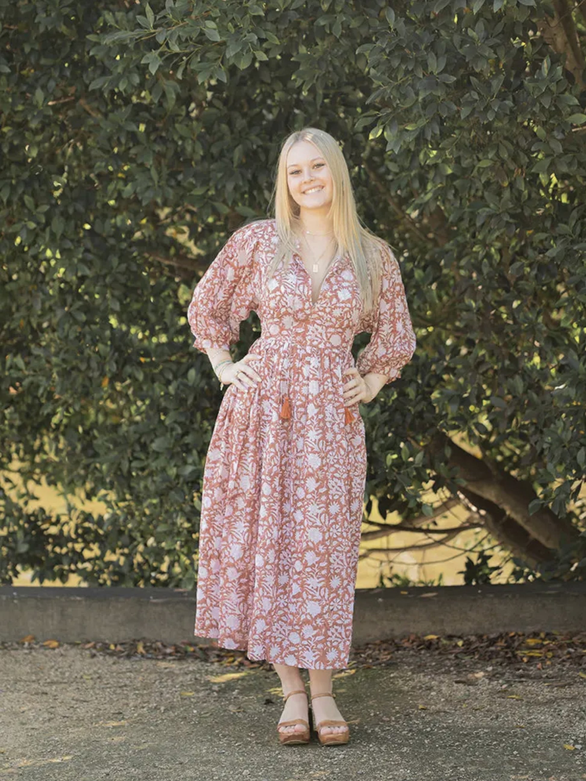 The Nora Maxi Dress brings essential Bohemian style to your wardrobe. Designed in a soft, feminine style with romantic billowy sleeves our Nora dress can be dressed up or down. Featuring:
