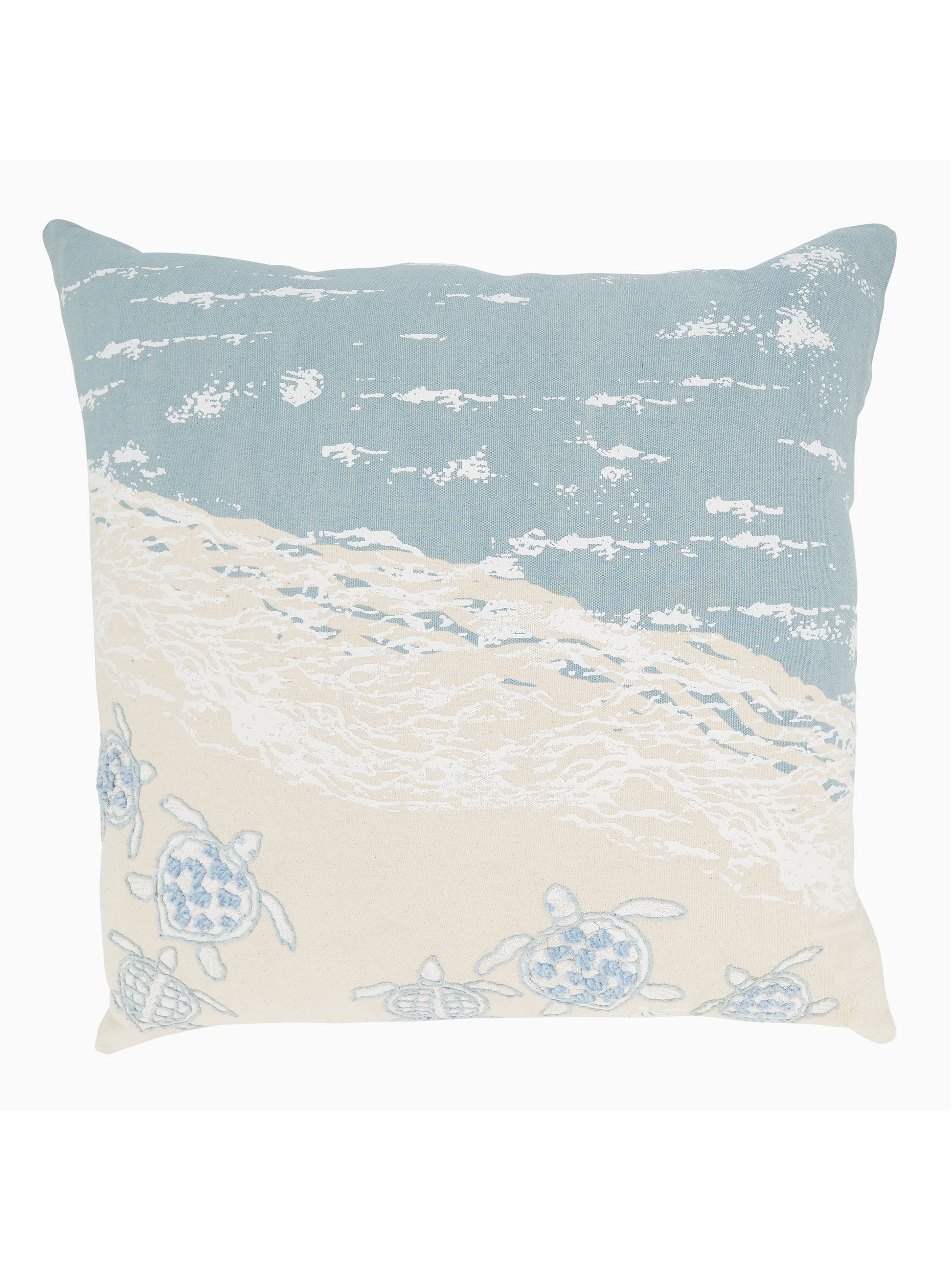 "Bring the gentle rhythm of the ocean to your living space 🌊🐢. Our Sandy Shores Sea Turtle Throw Pillow Cover features a calming design of waves meeting the sand, with sweet embroidered sea turtles making their way to the water. The soft blues and ivory make this the perfect accent for your sofa, armchair, or bedroom."