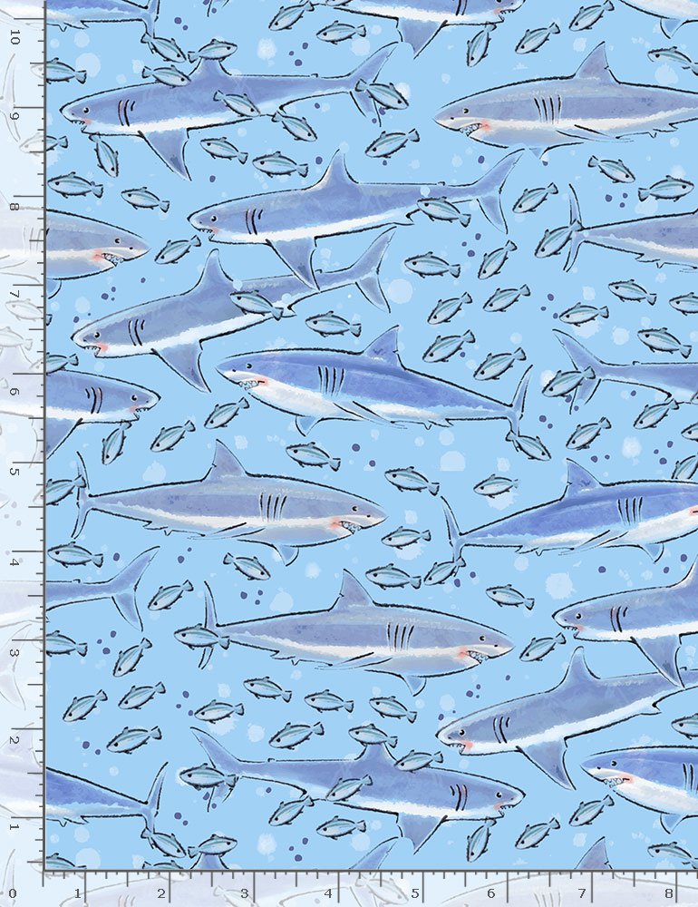 Sharks - Little Ocean Blue Studio - Fabric By The Yard - 100% Cotton - CD1297