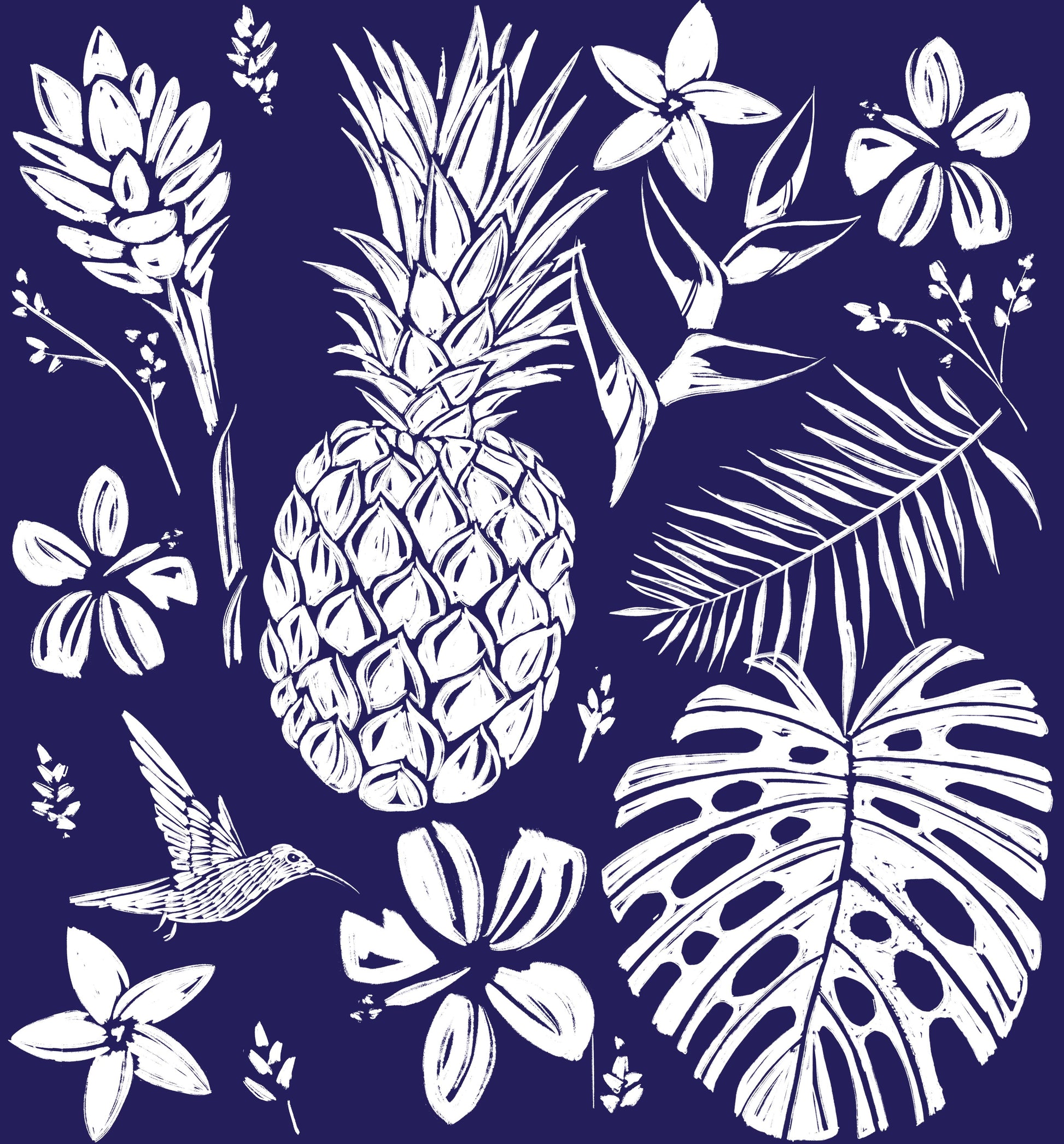 Tropical Pineapple (Dark Blue color) - Little Ocean Blue Studio - Fabric By The Yard - 100% Cotton