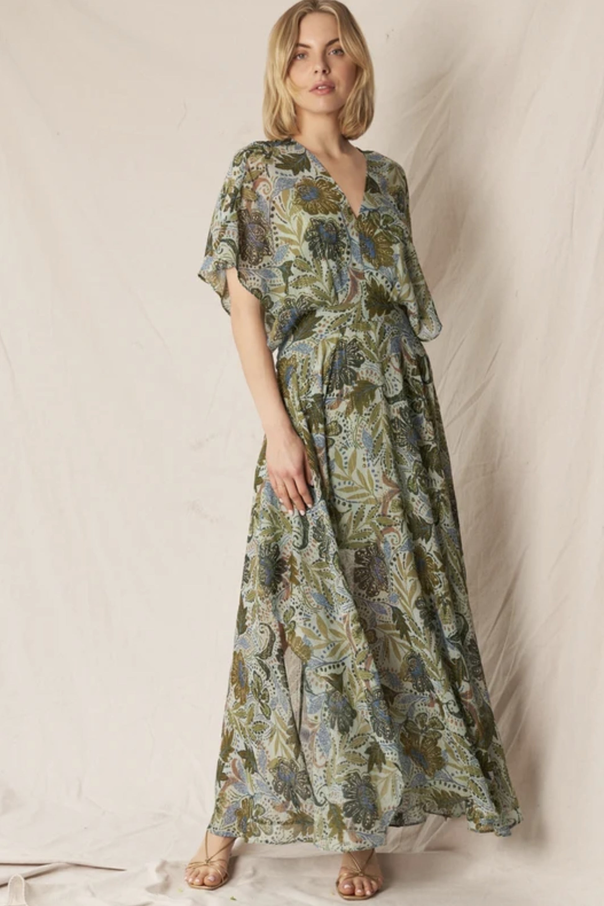 V-Neck Printed Gauze Maxi Dress - by En Creme®